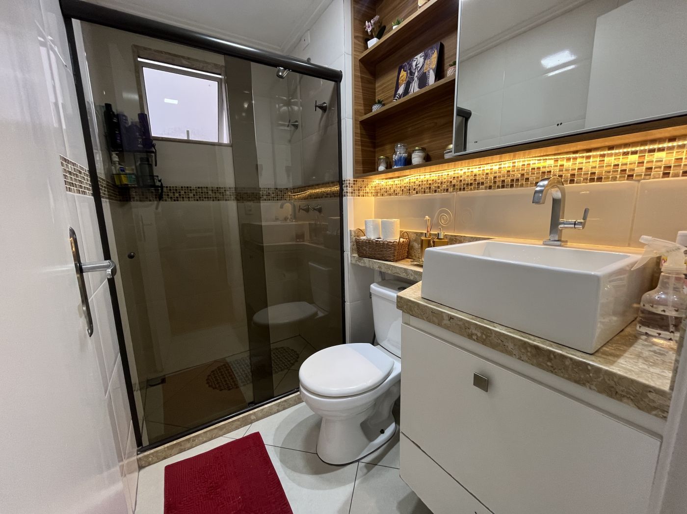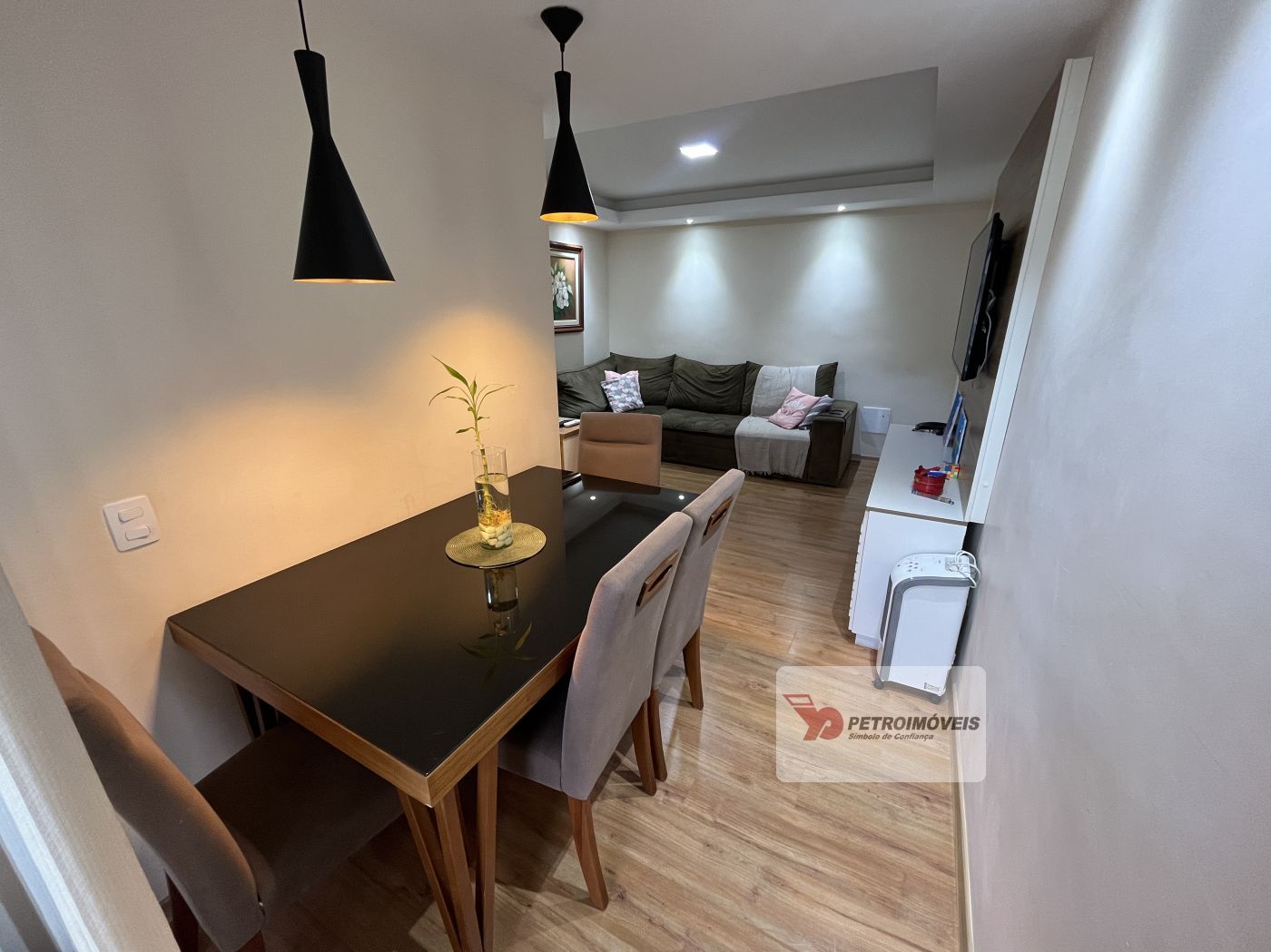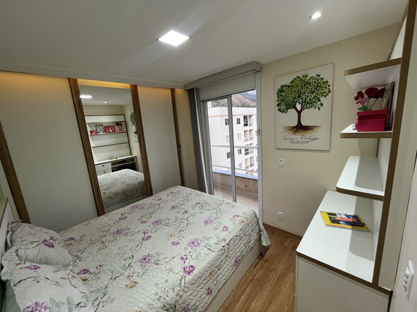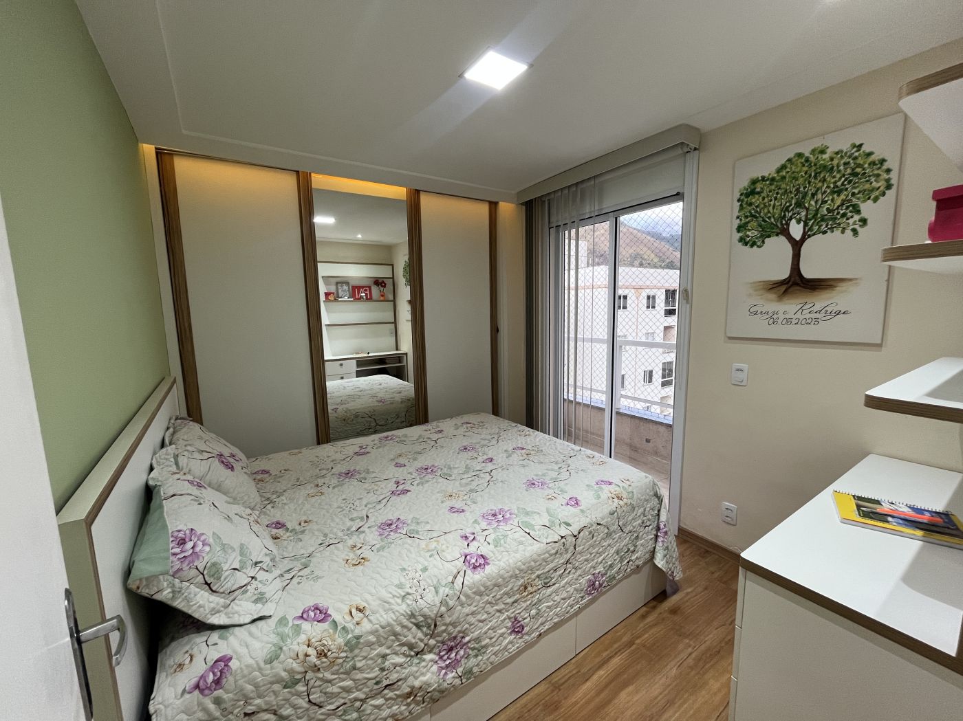 Sala em dois ambientes com painel, varanda, 02 quartos com armários sendo um com varanda, cozinha planejada com bastante armários de qualidade, cooktop e forno embutido, área de serviço e banheiro social com armários. Apartamento já tem aquecimento à gás, e uma vaga no estacionamento.