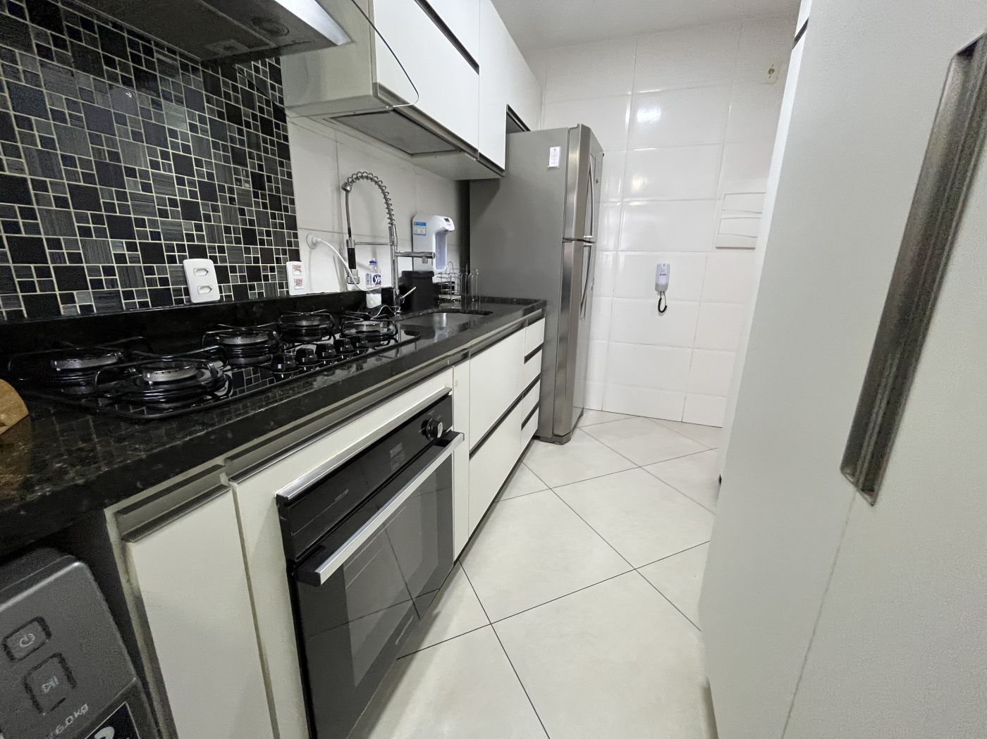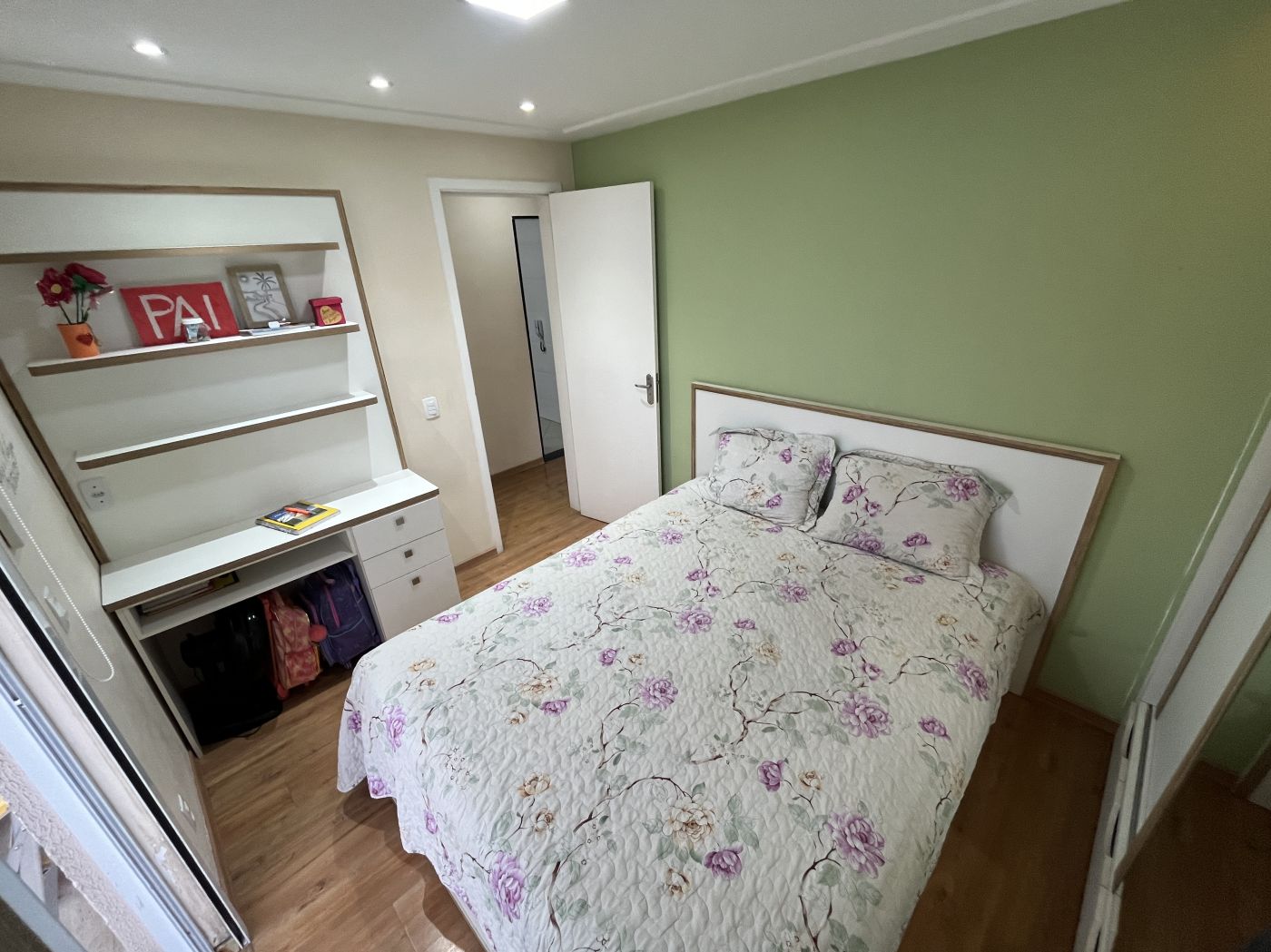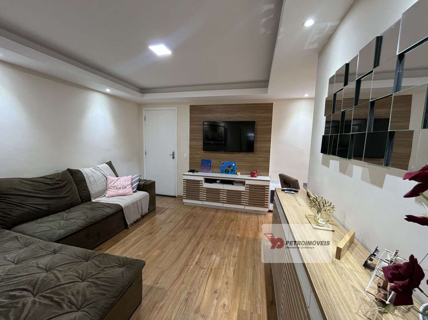 Sala em dois ambientes com painel, varanda, 02 quartos com armários sendo um com varanda, cozinha planejada com bastante armários de qualidade, cooktop e forno embutido, área de serviço e banheiro social com armários. Apartamento já tem aquecimento à gás, e uma vaga no estacionamento.