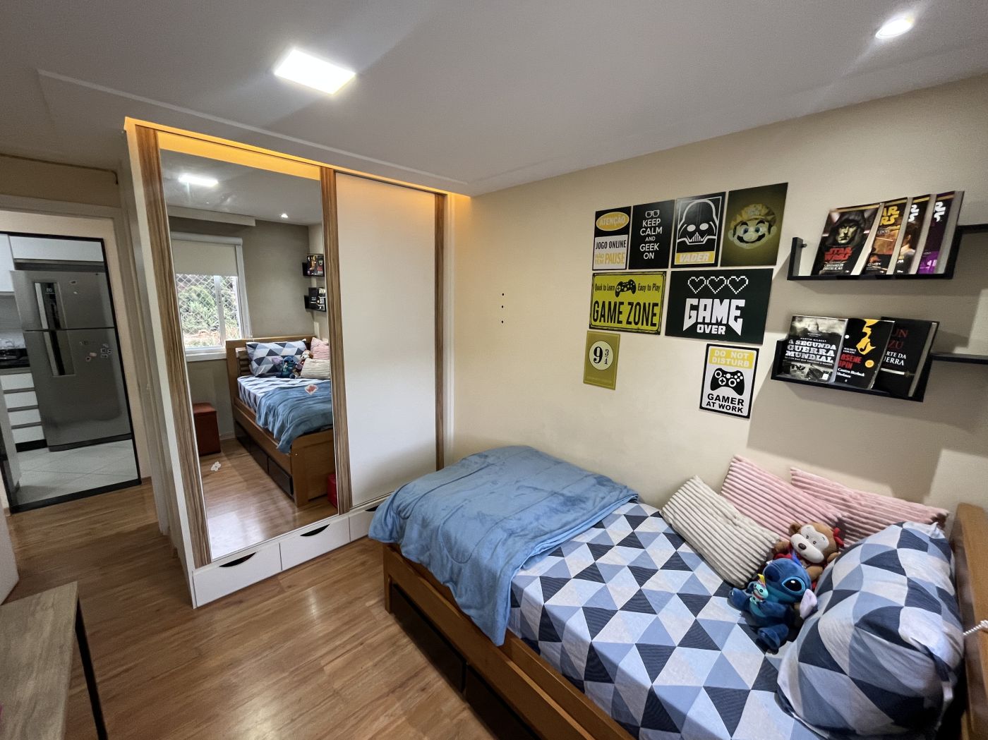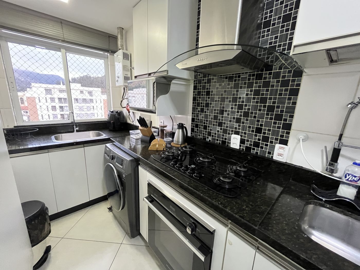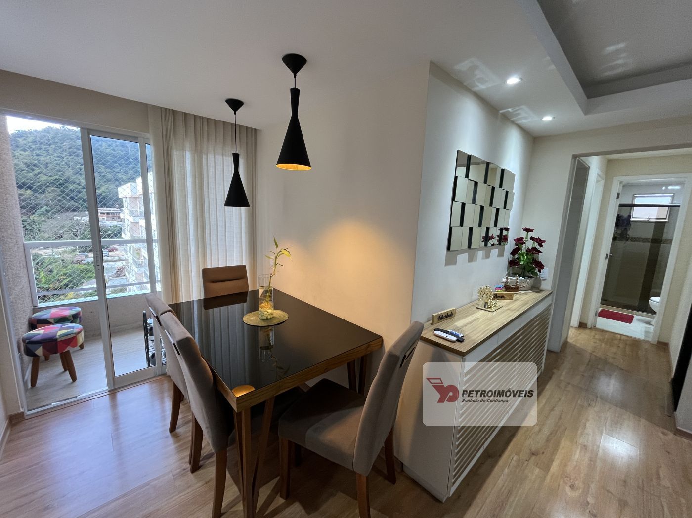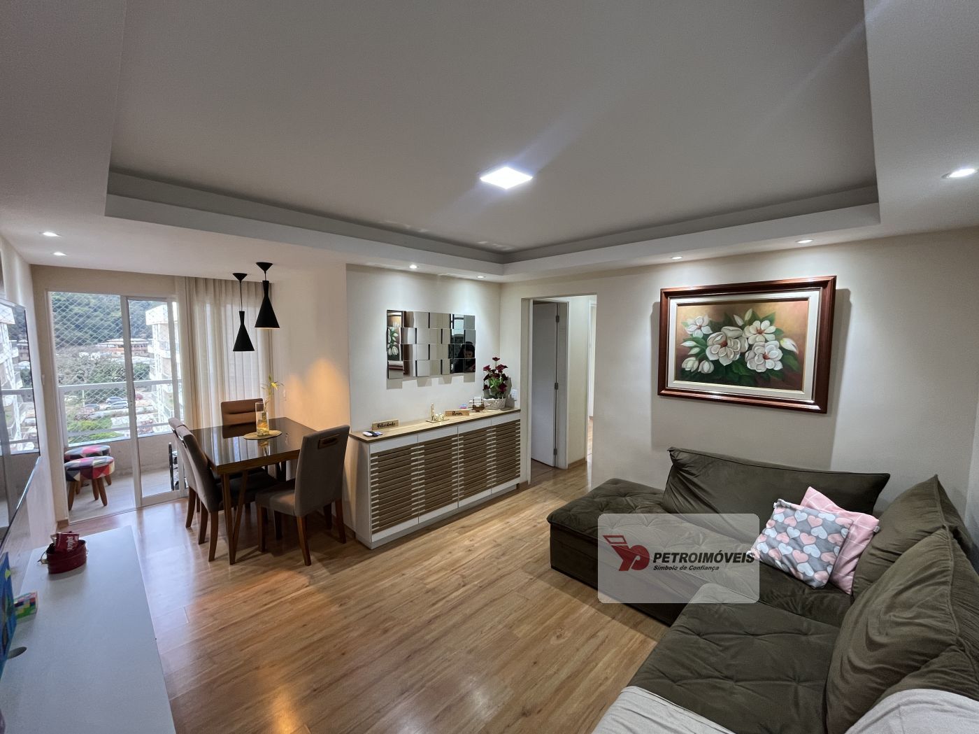 Sala em dois ambientes com painel, varanda, 02 quartos com armários sendo um com varanda, cozinha planejada com bastante armários de qualidade, cooktop e forno embutido, área de serviço e banheiro social com armários. Apartamento já tem aquecimento à gás, e uma vaga no estacionamento.